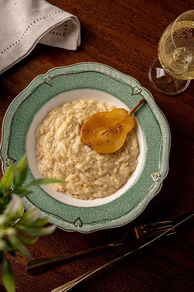Cremoso, delicado e acolhedor, esse risoni com pêra e brie é perfeito para noites em que o tempo desacelera e a comida vira um gesto de cuidado.